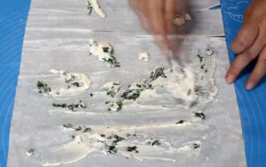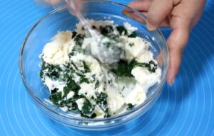 - U činiji pomešaj: sir, sitno iseckanu blitvu, 1 jaje i malo soli