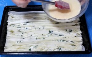 - Umuti 1 jaje + čašu mleka + malo soli pa prelij preko pite
